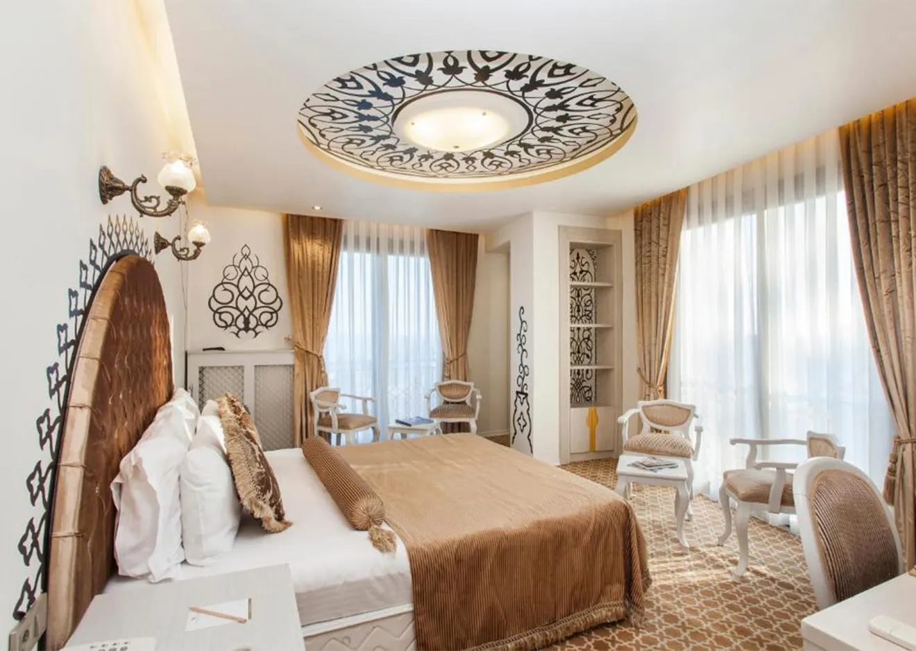 Genius discounts at this property depend on booking dates, stay durations, and other available offers. Located in Istanbul, just 1.2 km from the iconic Blue Mosque, Ottoman Hotel Park - Special Category offers stylish accommodations with a terrace, free private parking, and an elegant bar. The hotel is conveniently situated near major attractions, including Suleymaniye Mosque (1.6 km), Spice Bazaar (1.5 km), and Topkapi Palace (3.4 km). Guests can enjoy 24-hour front desk service, airport transfers, room service, and complimentary WiFi throughout the property. Each air-conditioned room features a desk, safety deposit box, flat-screen TV, and a private bathroom with a shower. Fresh linens and towels are provided for a comfortable stay. Start your day with a delicious vegetarian, vegan, or halal breakfast while taking in the charming surroundings. Nearby attractions include the Basilica Cistern, Column of Constantine, and Hagia Sophia. The hotel is easily accessible, with Istanbul Sabiha Gokcen International Airport just 38 km away. Couples love the prime location, rating it 9.0 for a romantic getaway.